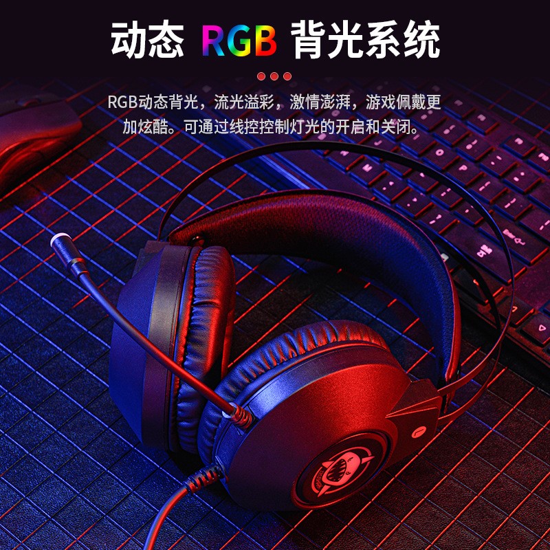 頭戴式有線耳機(jī)電競(jìng)游戲線控監(jiān)聽發(fā)光usb臺(tái)式電腦手機(jī)耳麥大耳機(jī)